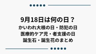 9月18日は、「かいわれ大根の日」「防犯の日」などの記念日があります。ここでは、9月18日は何の日?かいわれ大根の日・防犯の日・医療的ケア児・者支援の日・誕生石・誕生花のまとめと題して、9月18日の記念日や誕生石・誕生花について紹介します。